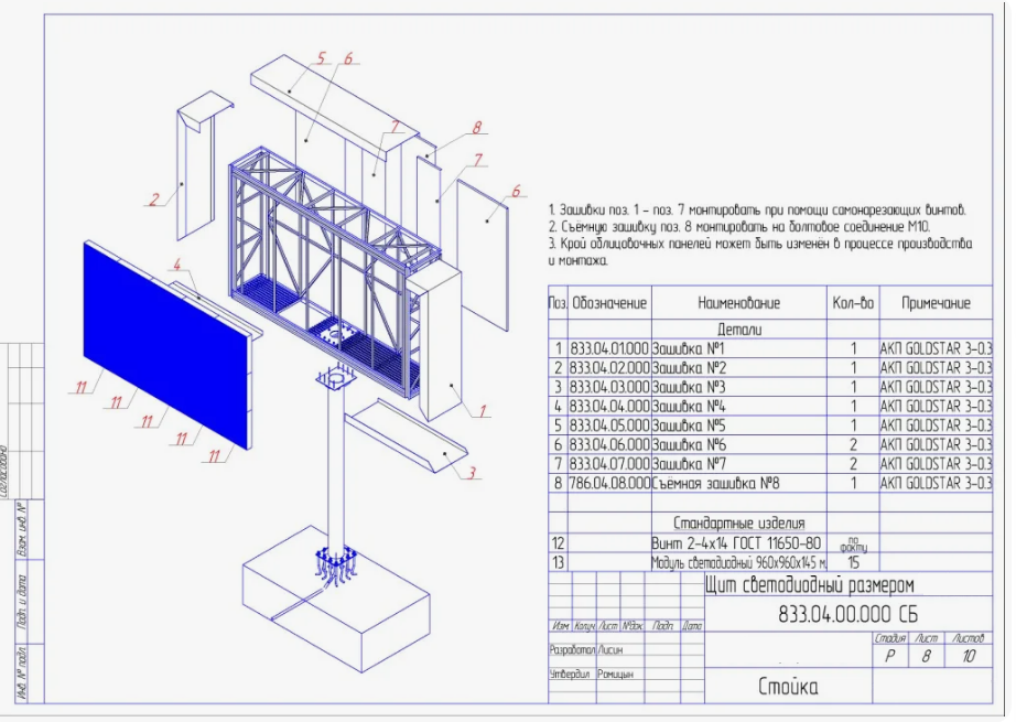 Процесс проектирования цифровых суперсайтов заканчивается получением разрешения на изготовление и установку рекламной конструкции. На данном этапе технический проект, а также иные документы, направляется в государственные органы, чтобы получить разрешение на изготовление и установку рекламной конструкции по заявленным характеристикам и на указанном в техническом проекте месте.