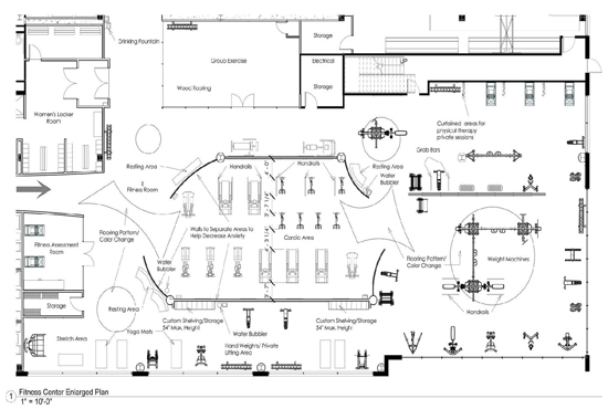 - умение читать чертежи и разговаривать на языке заказчика: ответственный работник должен понимать, что от него требуется в рамках реализации дизайн-проекта помещений фитнес-центра. Как минимум, рабочий должен понимать язык, на котором говорит заказчик и обладать элементарными навыками разбора чертежей;
