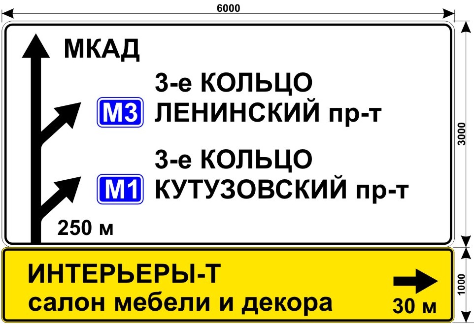 Место для информационных знаков или дорожных указателей выбирают в начале отрезка пути, на котором расположен объект инфраструктуры. Такие знаки устанавливаются, как правило, за 100 – 200 м. до рекламируемого объекта инфраструктуры. Итак, дорожные знаки в рекламных целях разрешено устанавливать: