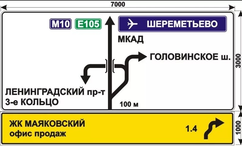 Дорожные указатели или знаки индивидуального проектирования обладают идеальными размерами, способствующими их высокой заметности для потенциальных клиентов. Размеры дорожных указателей могут быть разными, в связи с чем у рекламодателя есть возможность подобрать тот знак, который соответствует целям, задачам рекламной кампании, а также стоимость которого не выходит за рамки утвержденного рекламного бюджета.