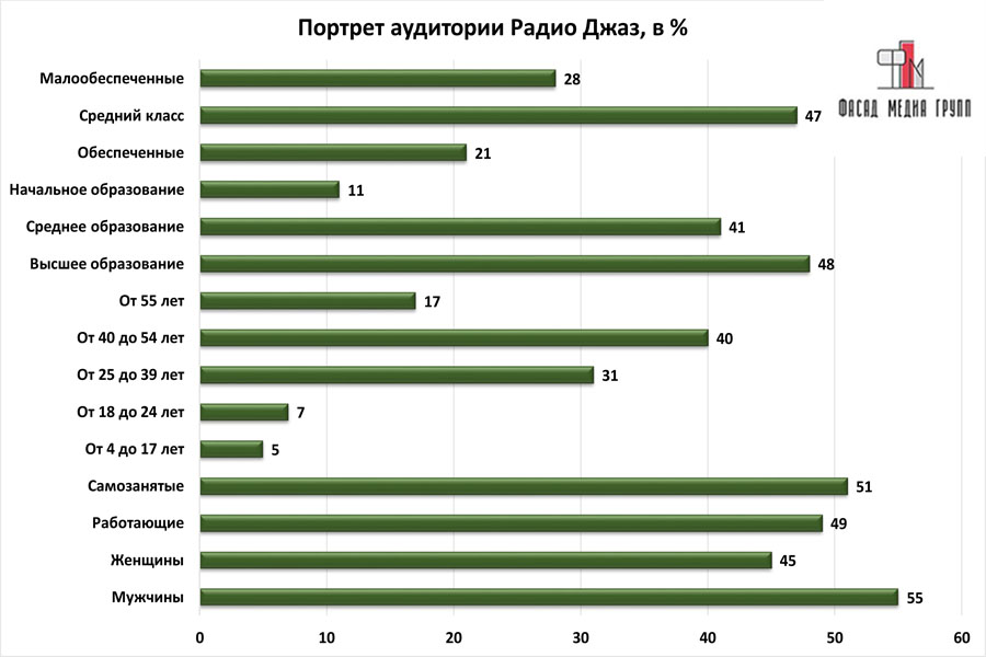 На вопрос: «Какова целевая аудитория «Радио Джаз»? - можно указать следующее: