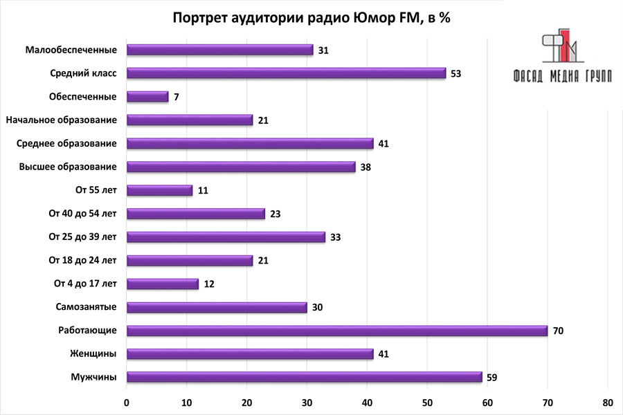На вопрос: «Какова целевая аудитория «Юмор ФМ»? - можно указать следующее: