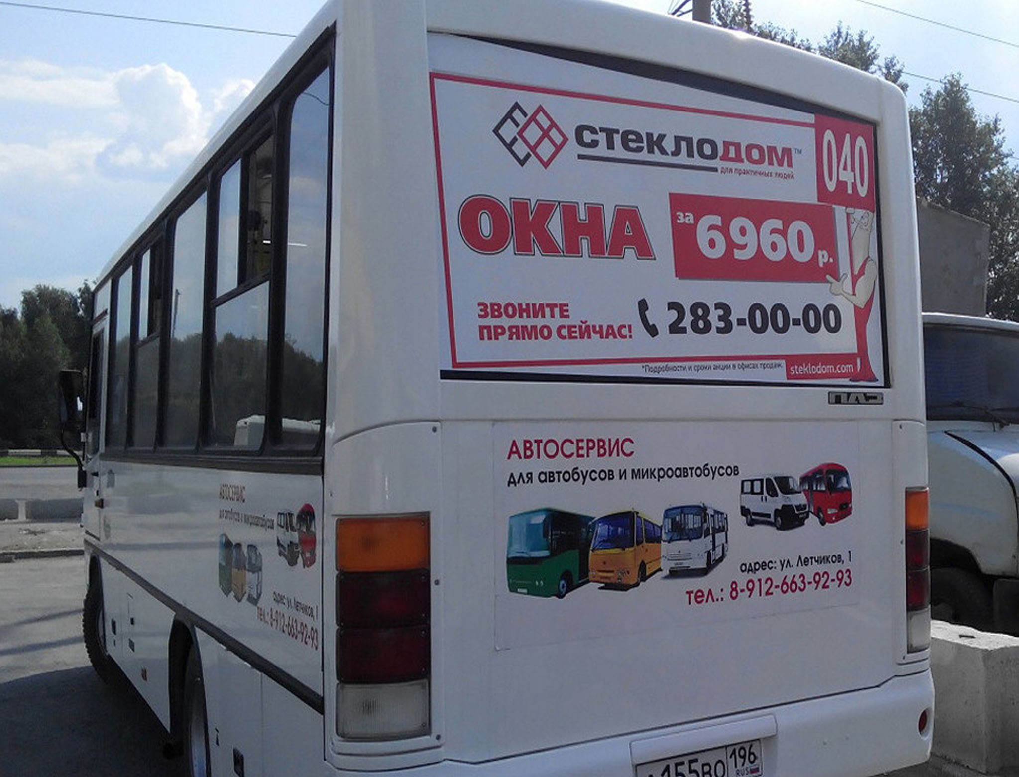 Как обеспечить массовый охват населения, размещая рекламу на автобусах, если денег на рекламу выделено не так много? В этом случае мы советуем использовать внутрисалонные форматы, а также брендирование заднего стекла или заднего борта транспортного средства. Указанные форматы являются относительно недорогими и по карману многим рекламодателям. Уверяем, что размещение рекламы на автобусах может себе позволить даже организация с небольшим рекламным бюджетом.