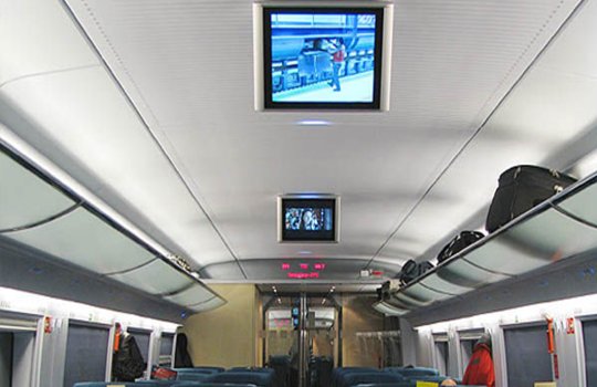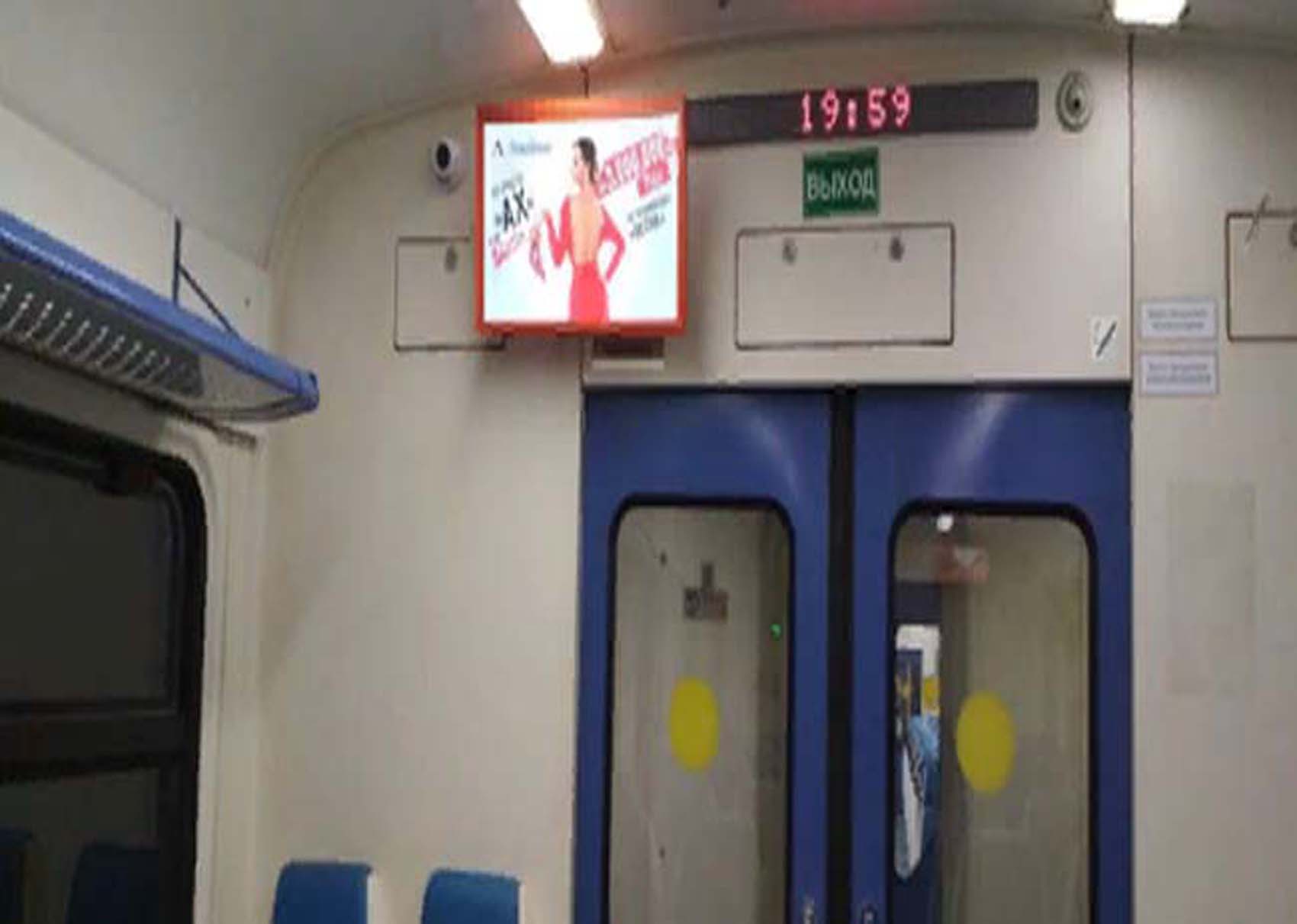 Реклама на мониторах в электричках на фото выше