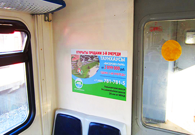 Приводим примеры монтажа рекламы в электричках: