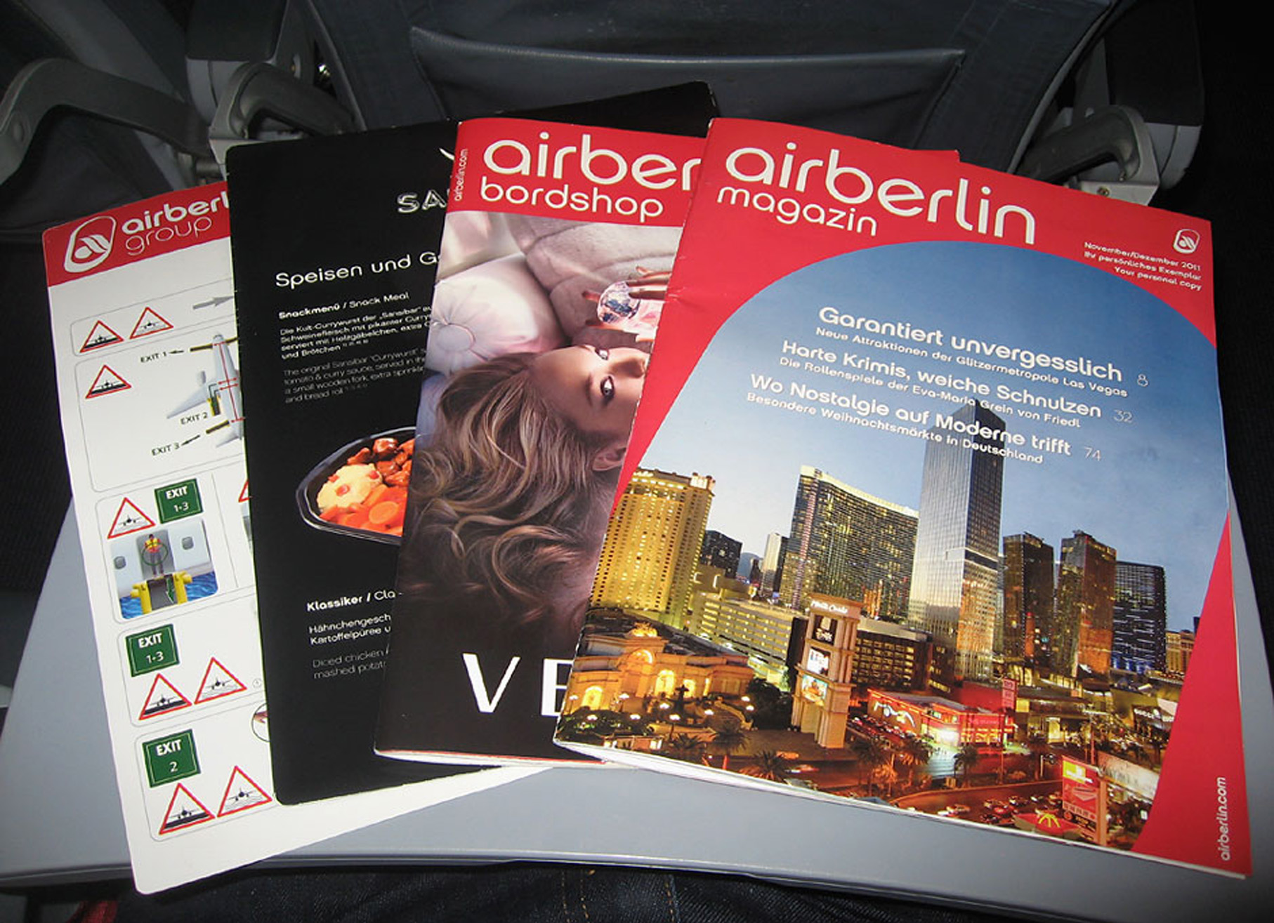 Реклама в бортовых журналах авиакомпаний на фото выше