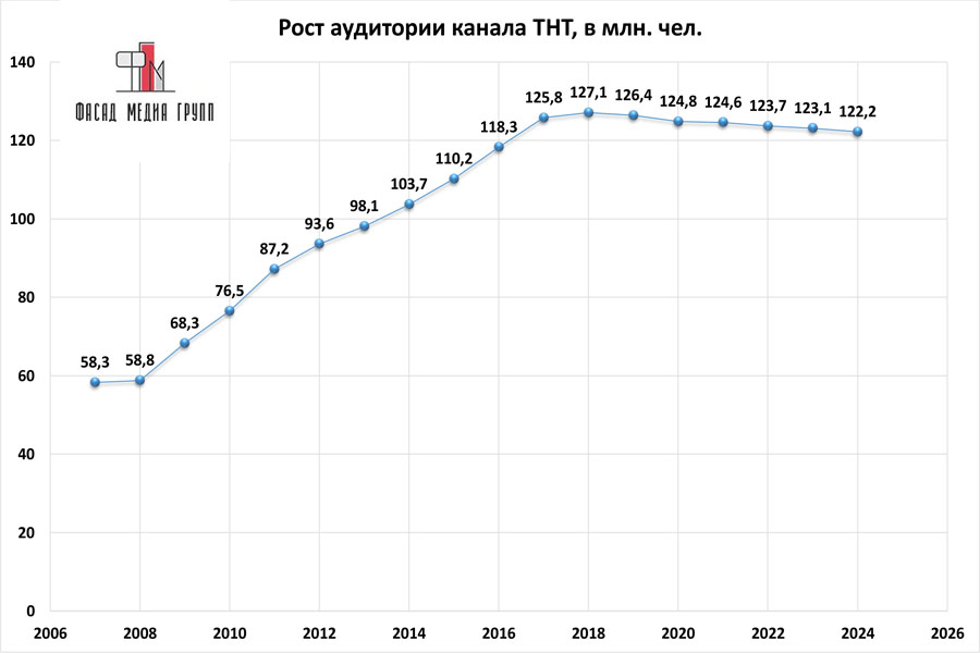 Показатели аудитории «ТНТ» по России: