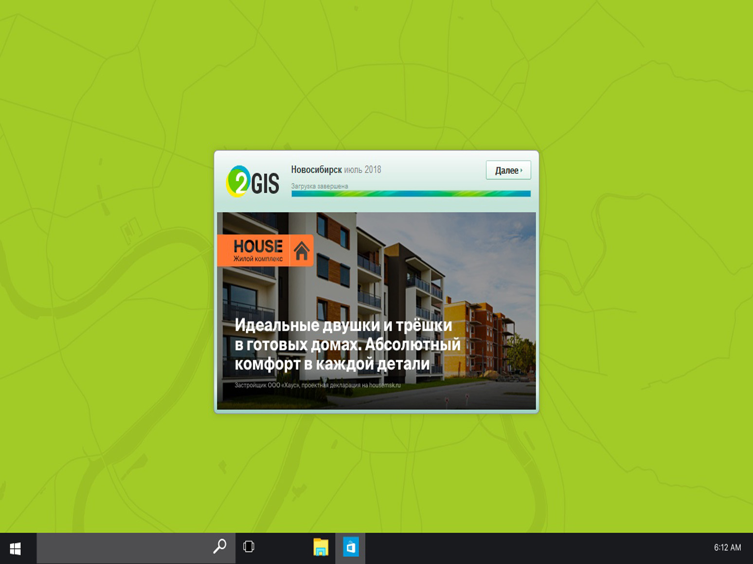 Пример баннера на финальной заставке 2ГИС (Двагис, ДубльГис) представлен на фото:
