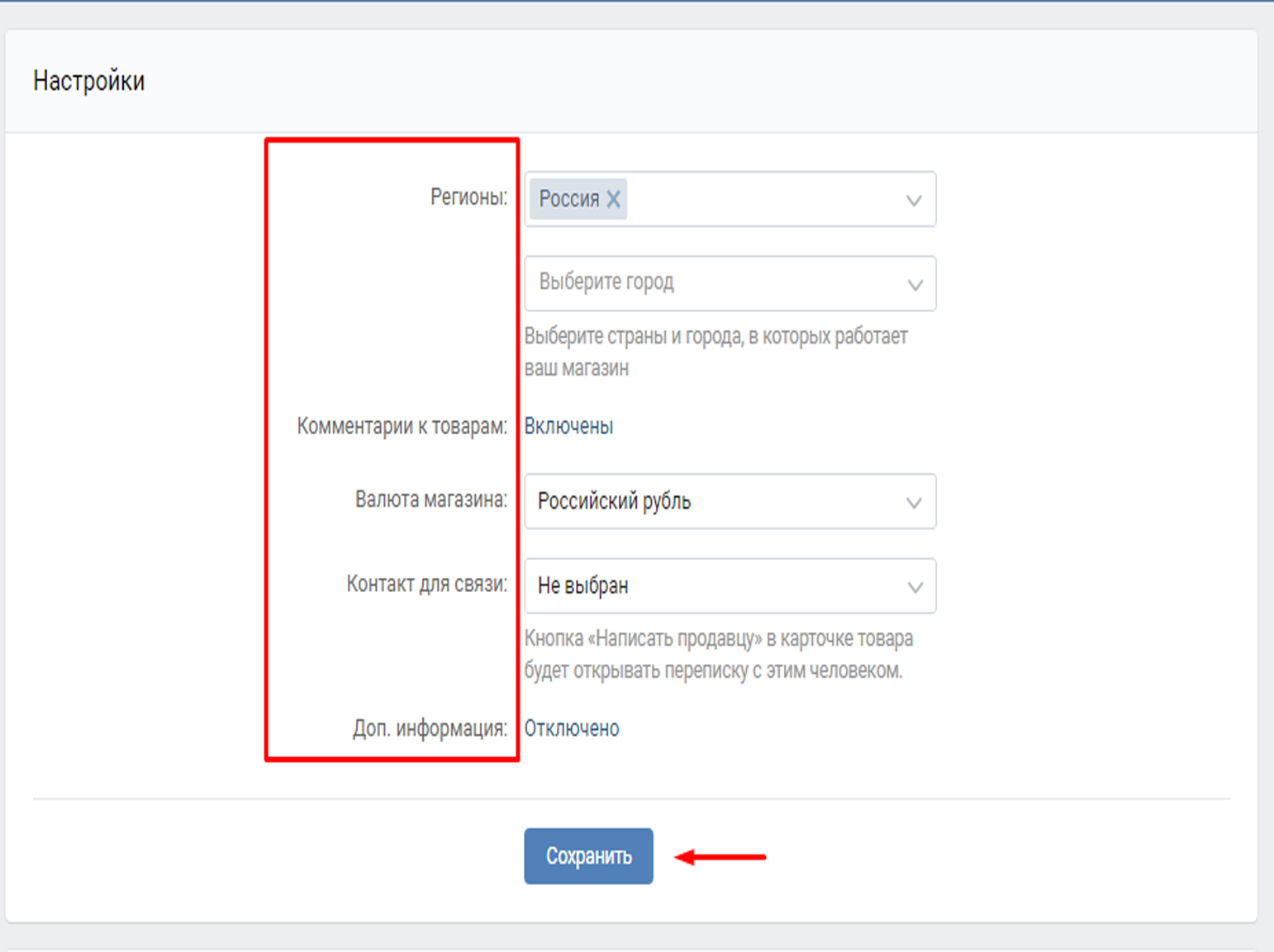 2) произведите настройку целевой аудитории: укажите страну, город. При этом ВКонтакте дает возможность указать на карте местонахождения вашего магазина. Если у вас несколько магазинов или офисов, то мы можете на карте отметить несколько объектов.
