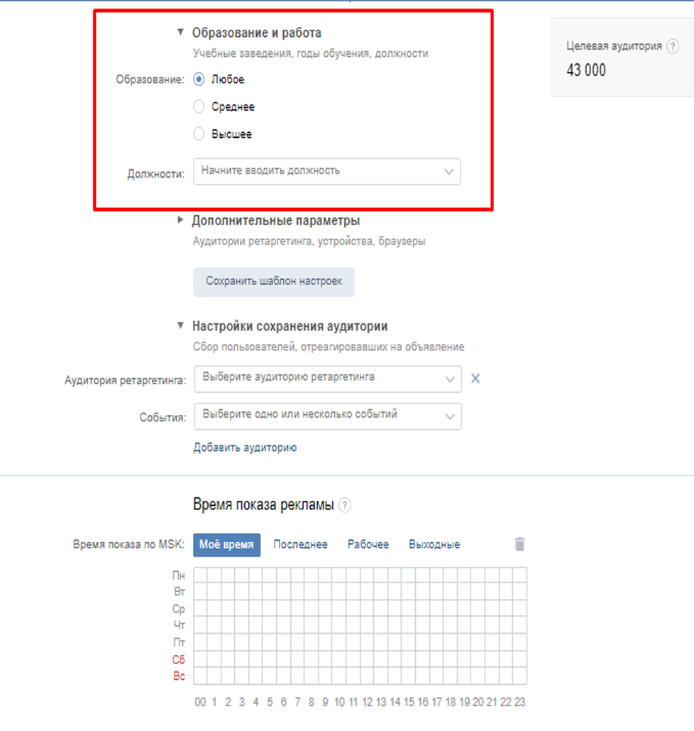 По умолчанию рекламные объявления работают круглосуточно, чтобы как можно больше людей могли их увидеть. Чтобы ваша реклама показывалась в конкретные часы и дни, задайте Время показа. Если вы не заполните таблицу с расписанием, показы будут идти круглосуточно. Показывать рекламу в будни или исключить показы ночью — выбирайте стратегию, которая поможет эффективнее решать вашу бизнес-задачу. Исключайте показ рекламы в нерабочее время — больше не будет ситуации, когда в вашей компании выходной, а пользователь увидел объявление, перешёл по ссылке, но не смог до вас дозвониться. Кроме того, настройка времени показа рекламы позволяет эффективно продвигать акции и спецпредложения. Например, ресторан может приглашать на бизнес-ланч по будням перед обедом, а салон красоты на маникюр со скидкой по утрам в выходные. Расписание рекламы позволит экономно расходовать бюджет и показывать рекламу тогда, когда клиенты активны и готовы к покупкам.