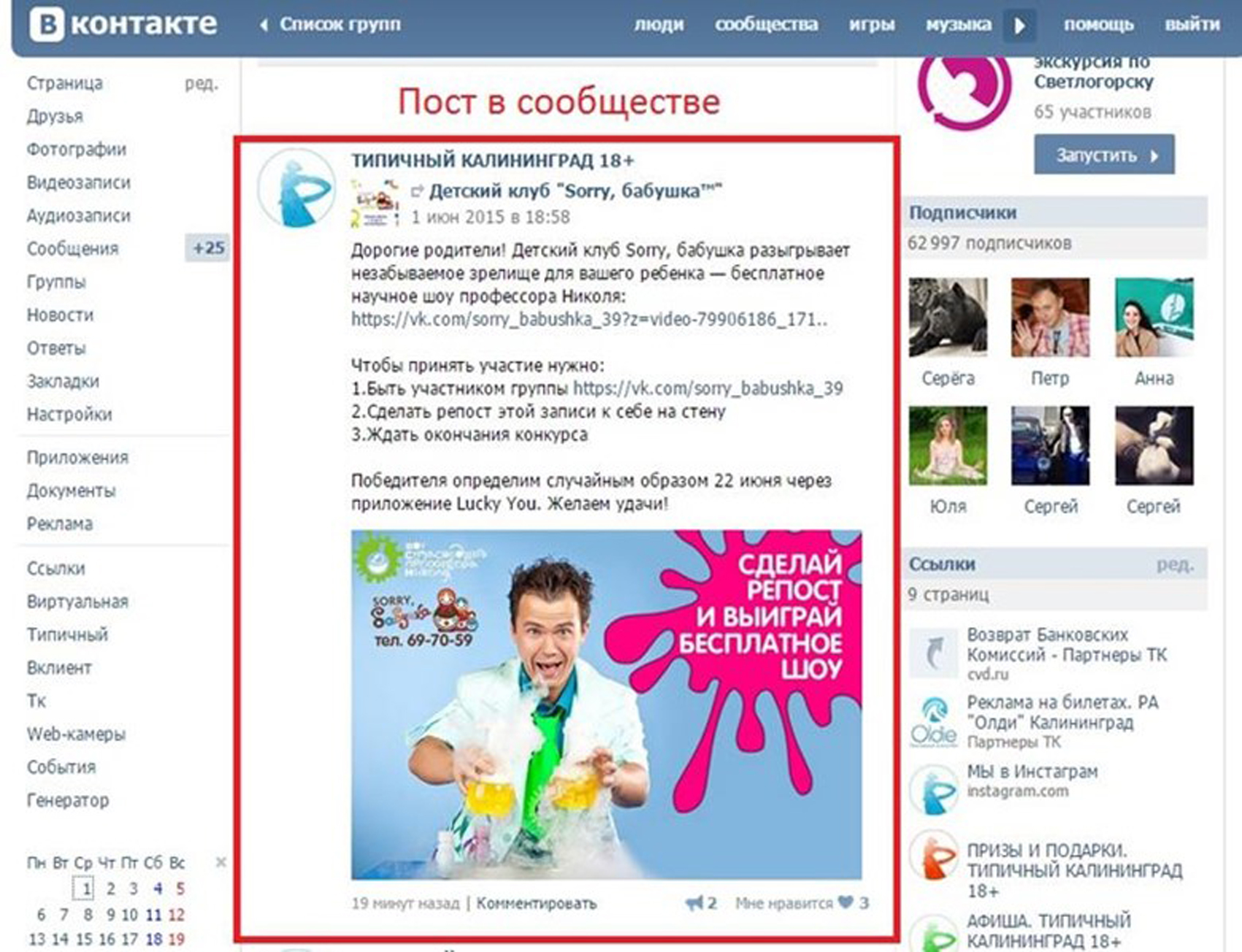 2) Реклама в сообществах ВКонтакте. Подписка на группы, страницы и мероприятия.