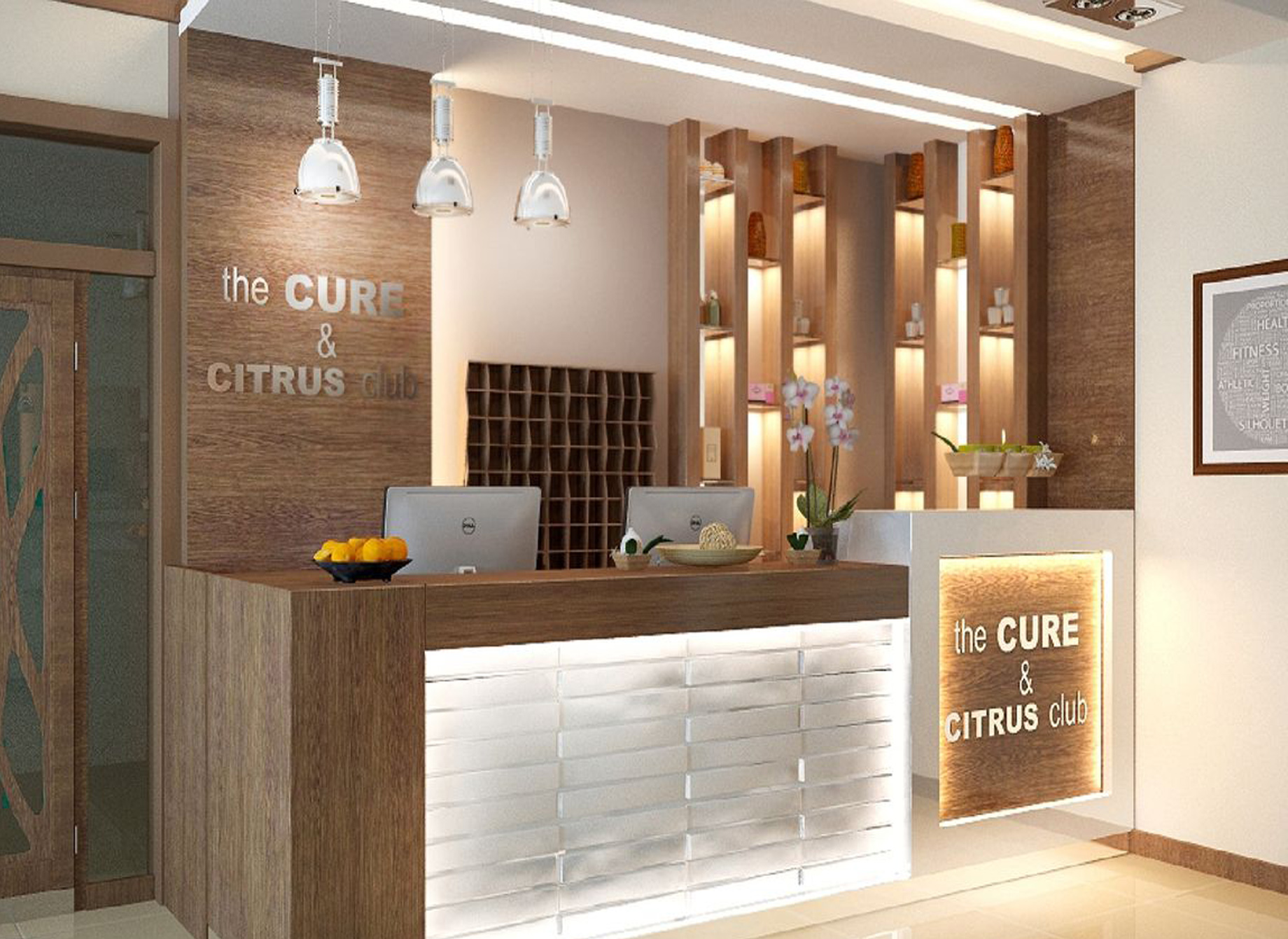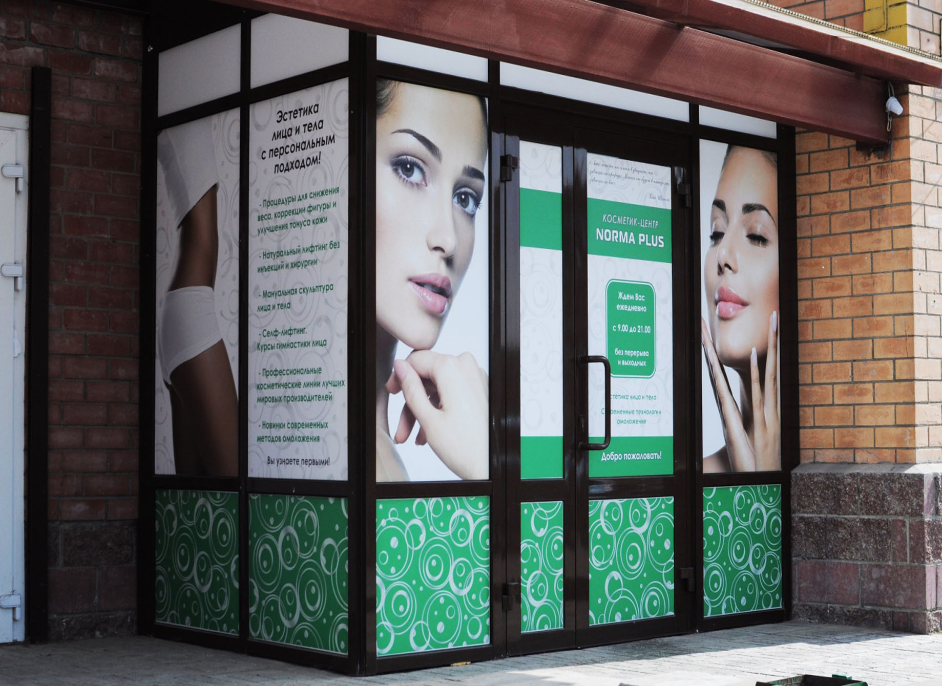 Пример брендирования входа и зоны ресепшн в салонах красоты: