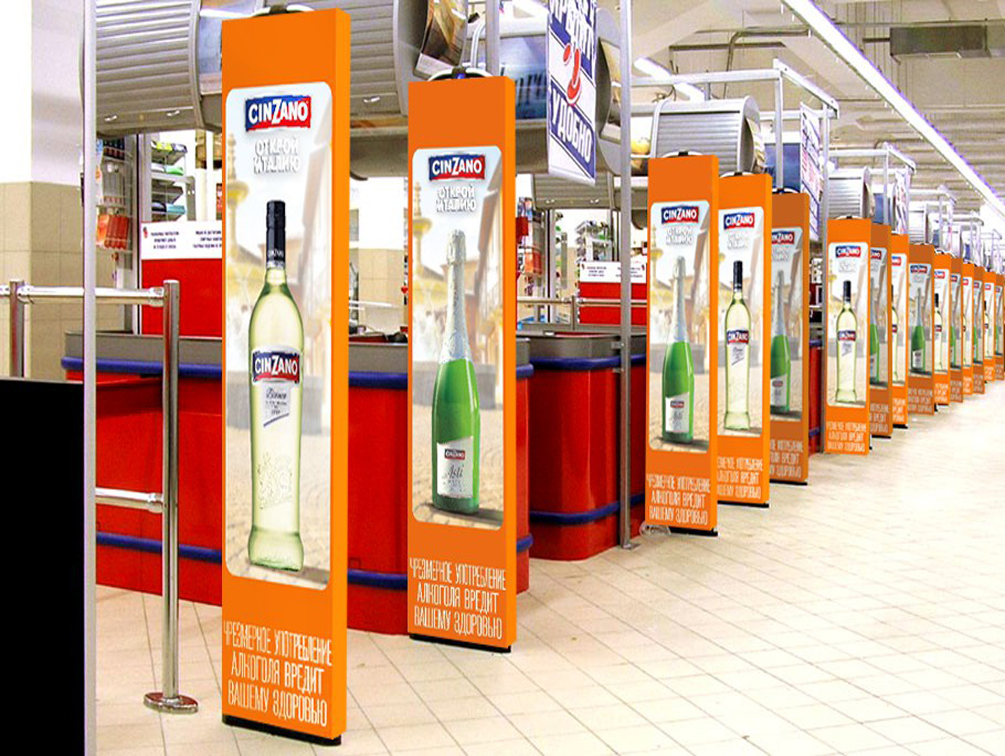 Монтаж рекламы в супермаркетах осуществляется по-разному в зависимости от того, какой рекламный материал размещается.